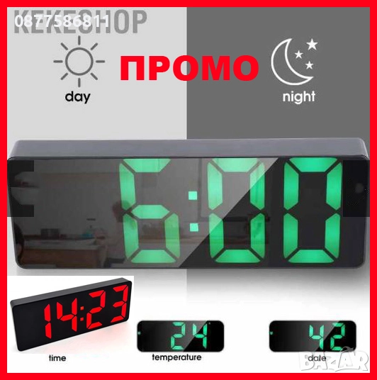 - Автоматично регулиране на осветеност на цифрите от 18:00 ч. до 6:00 ч.