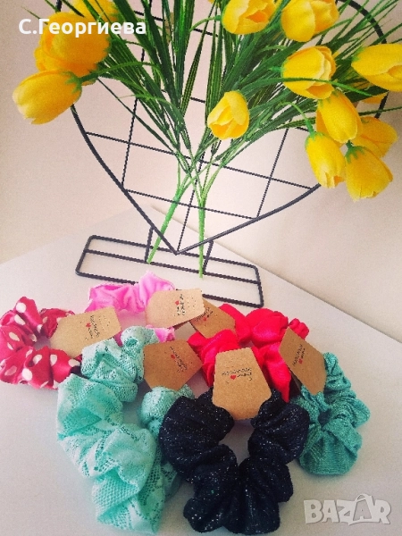 Продавам ръчно изработени ластици за коса, в различни цветове и плат.