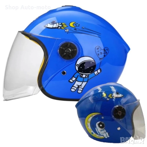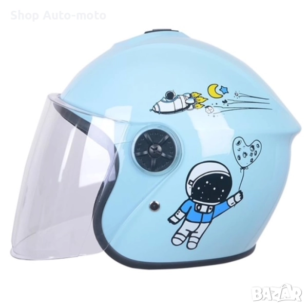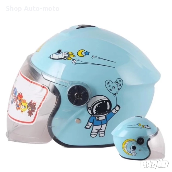 Детска каска за мотор Automat, За скутер, XS размер, Синя и тюркоаз.