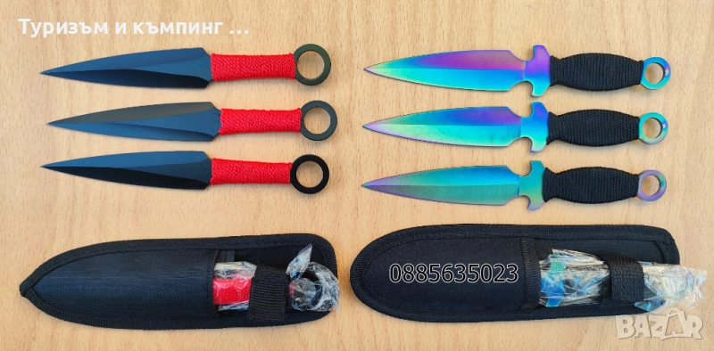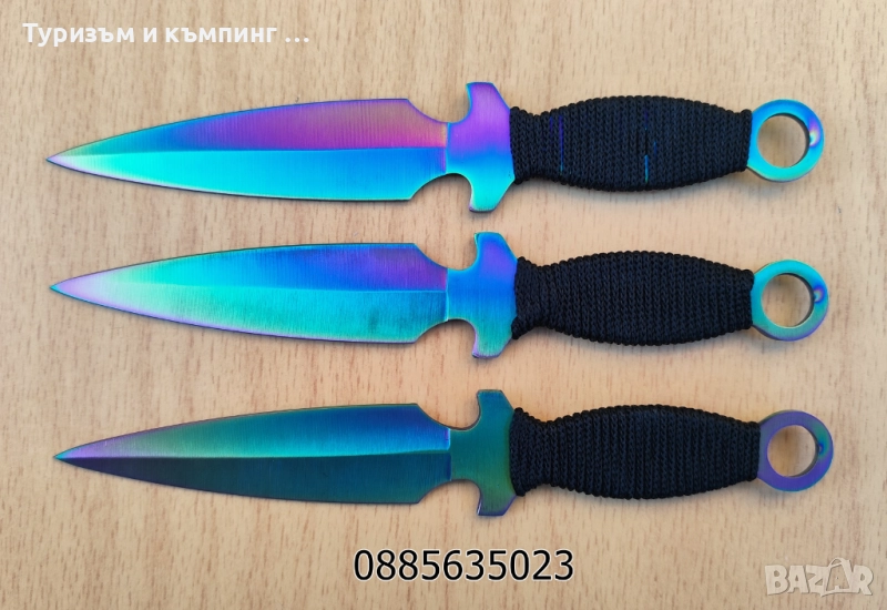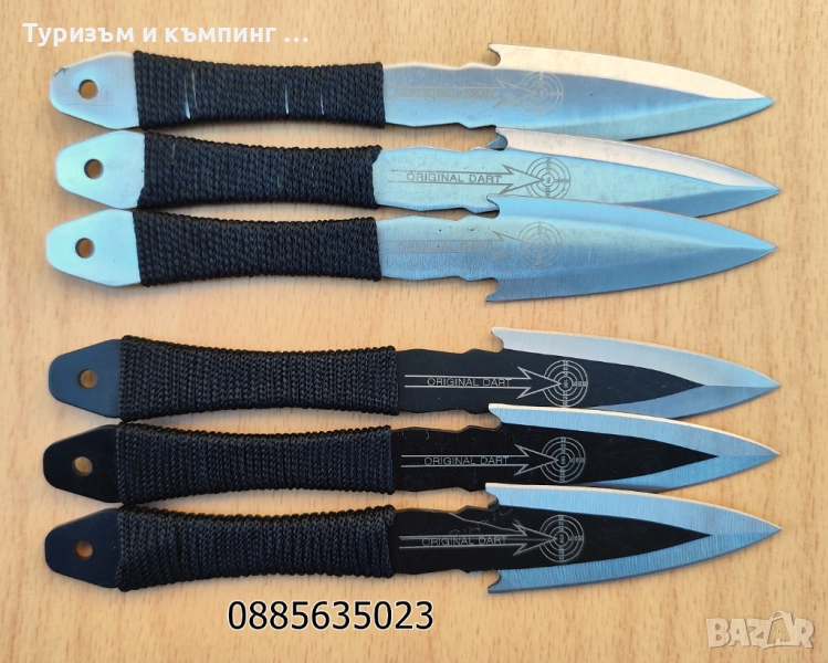 5 Ножове за хвърляне, металик с черна оплетка, цена 14 лв