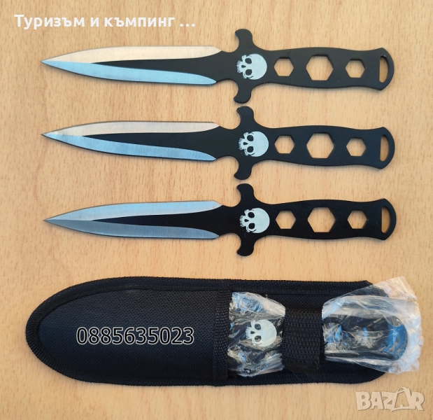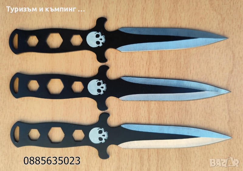 2 Ножове за хвърляне, черни с череп, цена 15 лв