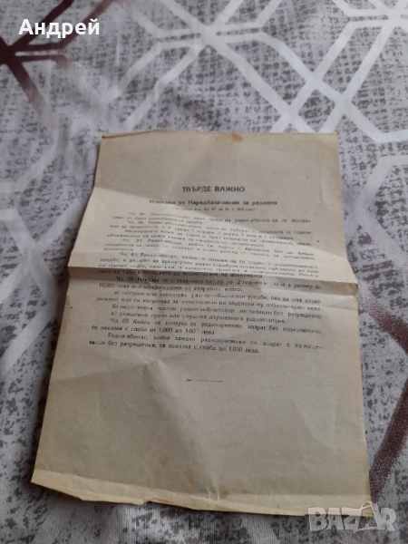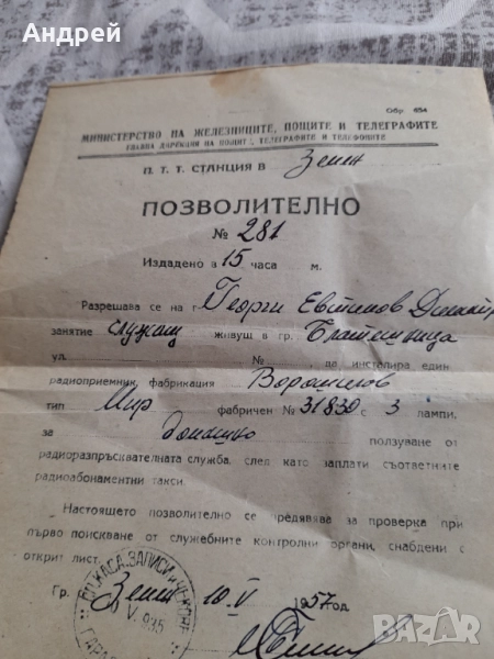 Старо позволително за ползване на радиоприемник → Обява 51634044