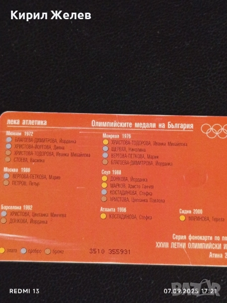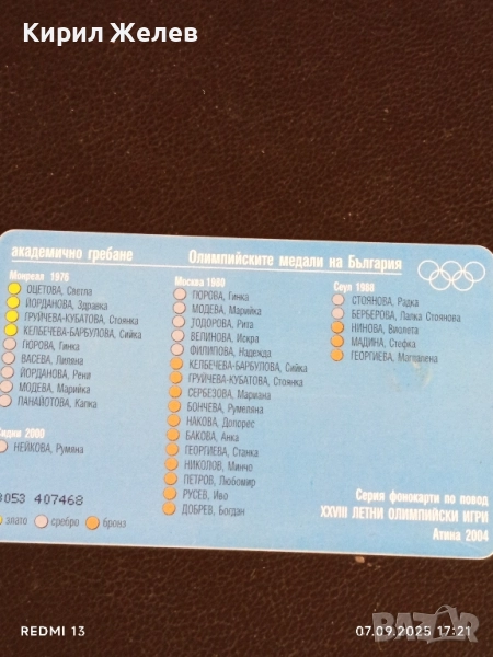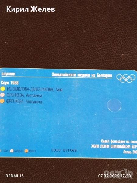 Три фонокарти БУЛ ФОН тема ОЛИМПИЙСКИТЕ МЕДАЛИ НА БЪЛГАРИЯ за КОЛЕКЦИЯ 50818 → Обява 51634271