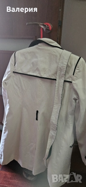 Страхотен шлифер,цвят мръсно бял с черен кант. Няма забележки, използван е броени пъти. При интерес давам размери.