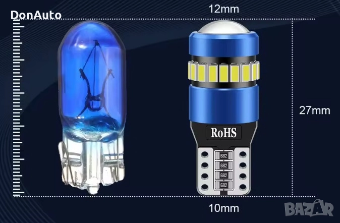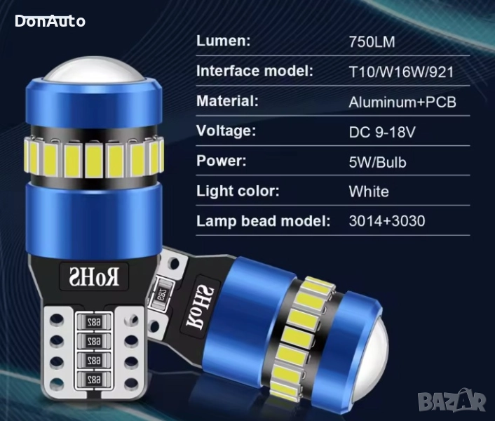 📦 Комплектът включва: 2 бр. T10 LED крушки