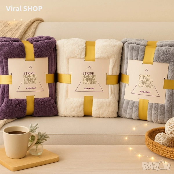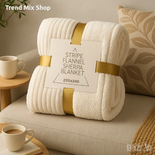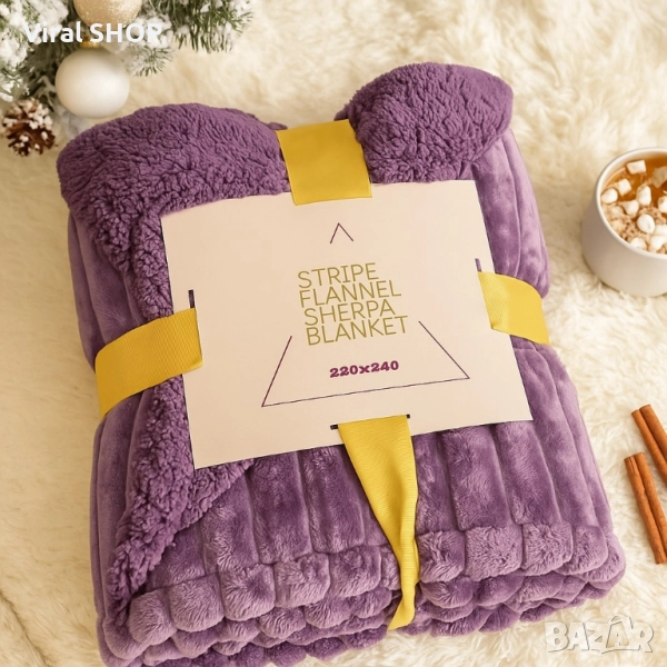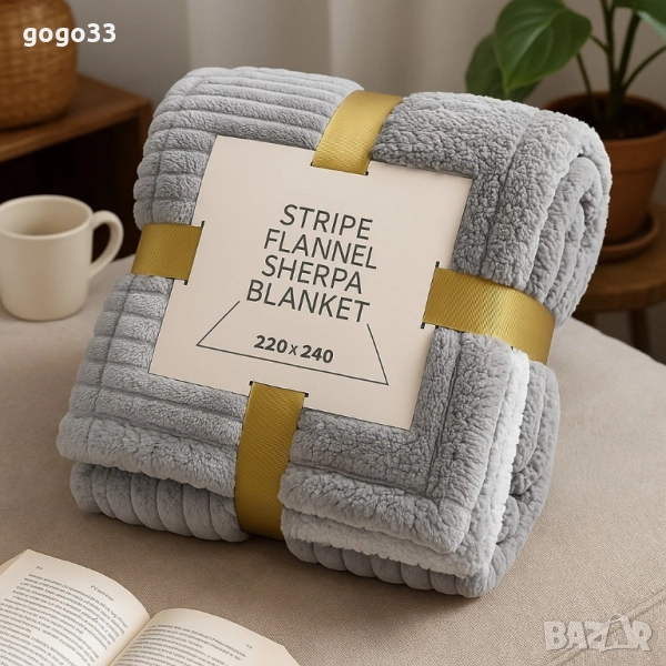 Продукт: Фланелено одеяло с райе и пухкава шерпа подплата (Stripe Flannel Sherpa Blanket);