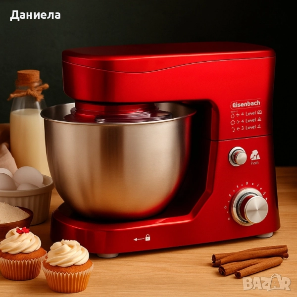 Ето ти готова кратка обява за този модел: --- ✨ Професионален кухненски планетарен миксер Eisenbach SC-207 ⚡ Мощност: 1200 W 🥣 Купа: 3.5 л неръждаема стомана (хранителен клас 304) 🔄 Планетарно смесване 360° | 6 скорости + Pulse 🍞 Приставки: кука за тесто, плоска бъркалка, тел за разбиване, предпазител против пръски, шпатула 🛡️ Гаранция: 12 месеца 💰 Цена: 105 лв (~54 €) 🚚 Доставка с Еконт