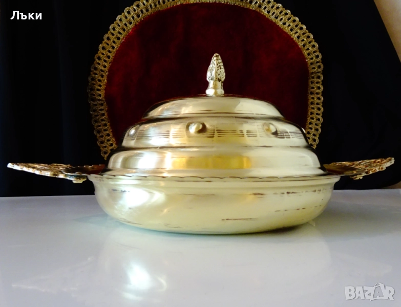 Старинен персийски съд за сервиране с капак,купа с