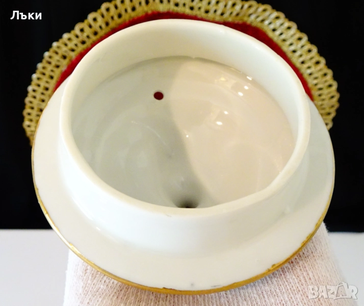 24 каратово злато.Височина 21 см.,дължина 27 см.,диаметър 14 см.,вместимост 1.5