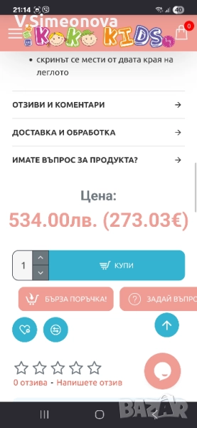 Сегашната цена на подобно легло е 534 лв. Прилагам и снимки от сайта, от който сме го купили