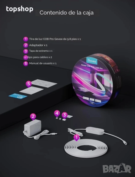 COB технология от следващо поколение: LED лентите Govee са изработени с интегрирана технология за опаковане и 1260 светодиода/м, превръщайки иновативните технологии в по-ярки, по-плавни и плавни светлинни ефекти, и могат да се използват като допълнително осветление.