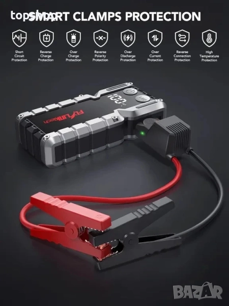 ?Подобрена интелигентна защитна защита - С подобрена интелигентна система за защита, скобите за джъмпери осигуряват защита от обратна полярност, защита от свръхток, защита от претоварване, защита от пренапрежение и защита от презареждане, което гарантира пълна безопасност за всеки шофьор. Стартирайте батерията си бързо и безопасно.