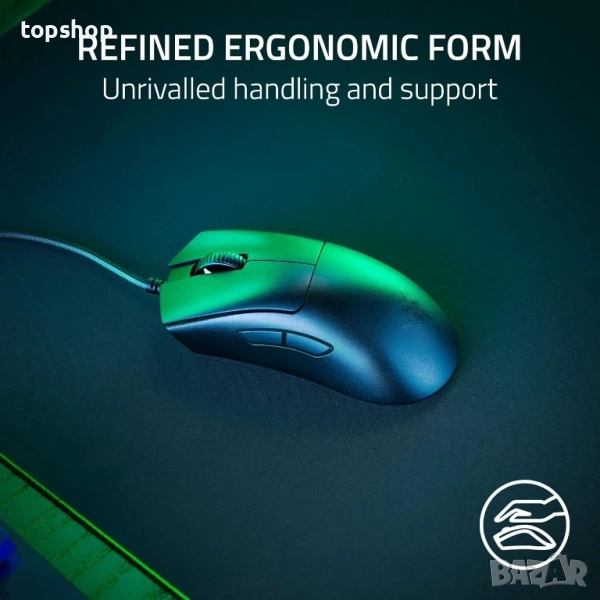 ЕРГОНОМИЧНА ФОРМА — Разработена в партньорство с водещи професионалисти в електронните спортове, емблематичната форма на Razer DeathAdder е допълнително подобрена, за да продължи наследството си от награждавано управление и комфорт.
