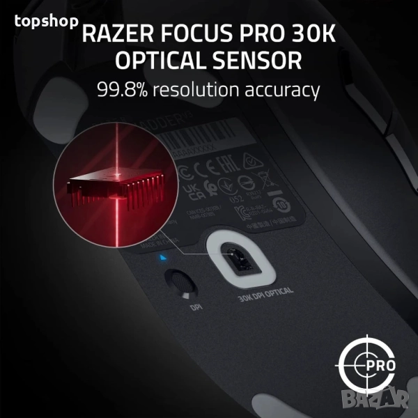 FOCUS PRO 30K ОПТИЧЕН СЕНЗОР — Безупречно проследяване върху по-широк спектър от повърхности, включително стъкло, подкрепено от интелигентни функции за подобрено прицелване и контрол.