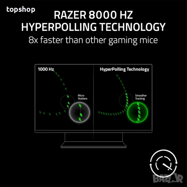 8K HZ HYPERPOLLING ТЕХНОЛОГИЯ — Мишката може да съобщава позицията и кликванията си на вашия компютър до 8000 пъти в секунда за почти нулева латентност на входа.