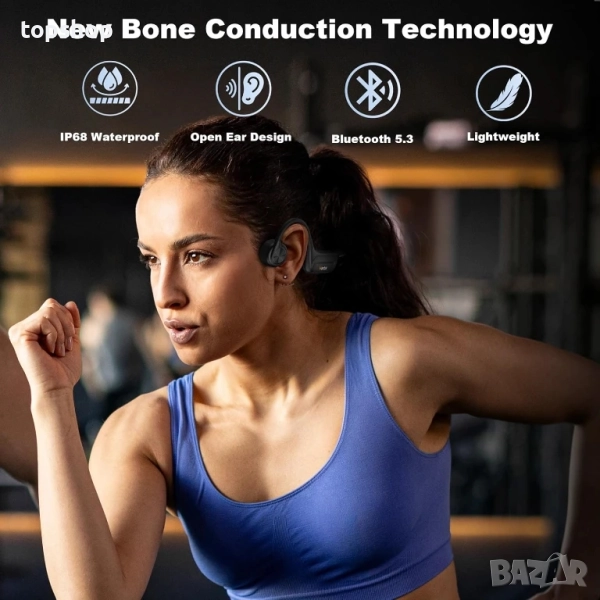 НОВИ слушалки Wantek с костна проводимост - 32GB памет за възпроизвеждане на MP3, водоустойчиви IP68
