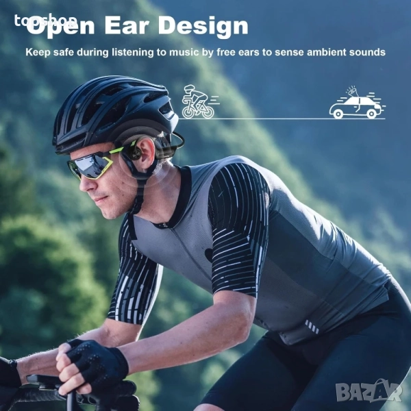 【Леки и удобни】: Тези велосипедни слушалки тежат само 32 грама, използват обгръщаща титаниева рамка, разтегната без деформация и пасваща на главата ви. Дизайнът без тапи за уши ви позволява да слушате през целия ден без умора на ушите и е съвместим с очила, шапки и др.