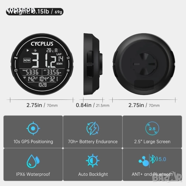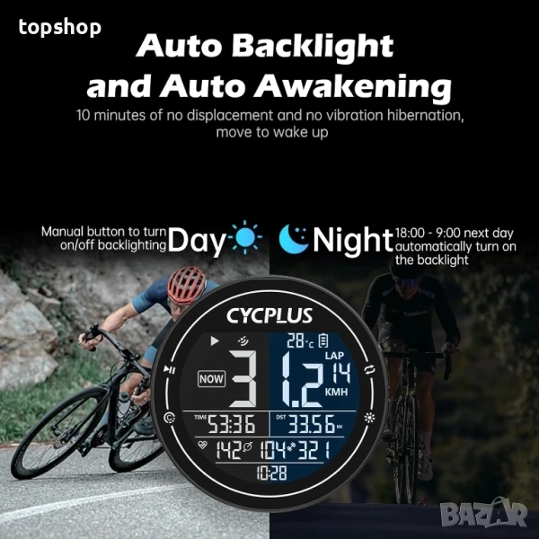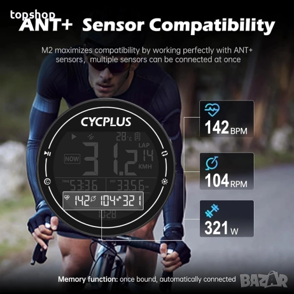 Нов компютър за велосипед CYCPLUS GPS, безжичен, ANT+ Bluetooth скоростомер, километраж, IPX6 вод...