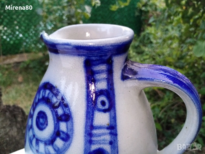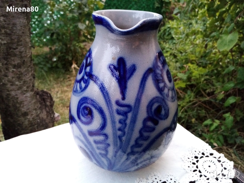 Представям ви автентична немска солна керамика - един занаят, с вековни традиции. Какво е различното с обикновената керамика ? По време на печенето, когато температурата в пещта достигне + 1200 градуса, през специални отвори в камерата се добавя готварска сол. Кристалите на солта веднага се изпаряват от високата температура и се наслояват върху съдовете като т.н. "отлагания" По този начин се постига така характернита за тези съдчета текстура на "портокалова кора". Колкото по-изявен е релефът, толкова по-интензивно е отлагането на сол. Този метод на производство е по-сложен и трудоемък от обикновената керамика и днес все по-малко грънчарски ателиета я произвеждат Поради това тя е и по-скъпа.