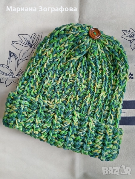 4. Шапка с весели тонове на трицветен зелен меланж - 32.00 лв.