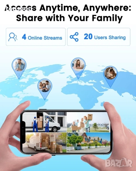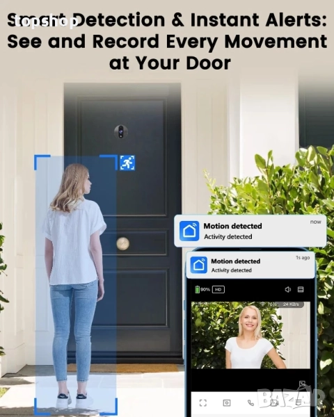 【Интелигентни сигнали за откриване и сигурно съхранение】Камера-звънец използва усъвършенствана технология за точно откриване на кой е на вратата ви, намалявайки фалшивите сигнали. Когато някой бъде засечен или натисне звънеца, тя заснема събитието и ви изпраща незабавни сигнали. Поддържа локално съхранение до 128GB (включена е безплатна карта от 32GB) или облачно съхранение. Можете също така да споделите достъпа със семейството си, така че всички да останат информирани. Персонализирането на чувствителността и настройката на сигналите ви помага да избегнете ненужни сигнали.