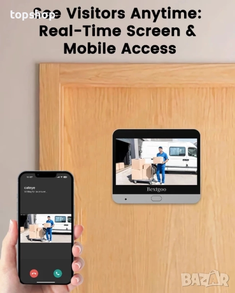 Нова шпионка за врата с 2K видеокамера, 32GB карта памет, 4.3" цветен монитор, батерия 8000mAh, 170°
