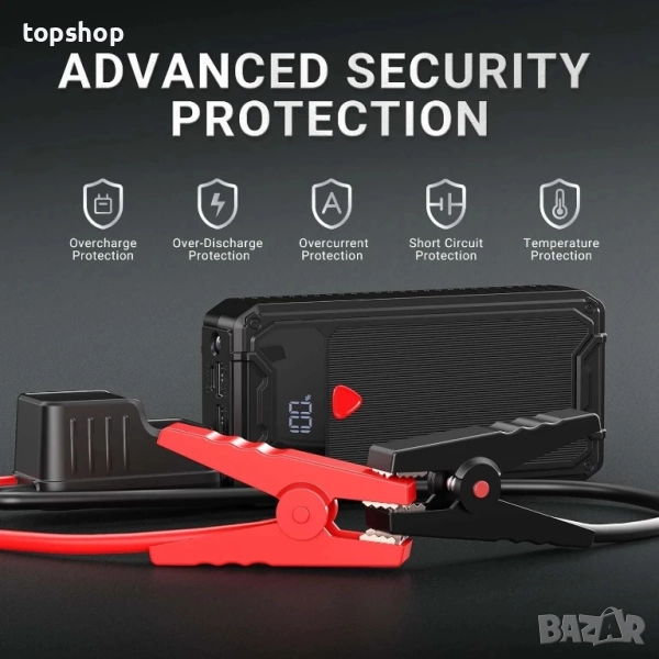 Jump Starters & Battery Chargers е елегантно и компактно устройство, което е мощно. Черно-червената му цветова схема с лъскаво покритие му придава модерен и стилен вид. Малка вътрешна литиево-йонна акумулаторна батерия захранва това устройство и осигурява достатъчно мощност за стартиране на повечето превозни средства, без да е необходимо да се включва във външен източник на захранване.