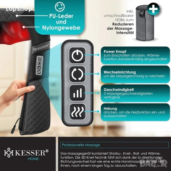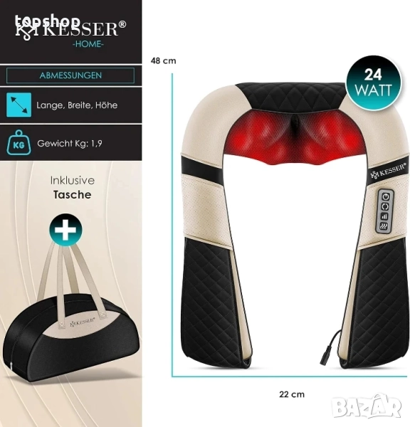 НОВ Шиацу масажор за врат, рамене и гръб с чанта KESSER® Масаж с топлина за Врат, гръб, рамене...