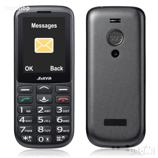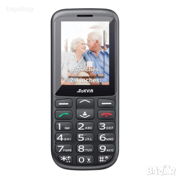 Нов TOKVIA T111 2.4-инчов голям дисплей Мобилен телефон с големи бутони за възрастни хора с SOS бут.