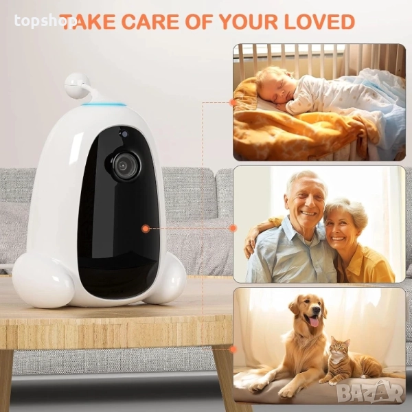 【Лесен за употреба, Plug & Play】: Без WiFi, без приложение, защитава поверителността, сдвояването на монитора и камерата ще се извърши при производството им, просто трябва да включите камерата (бебешкото устройство) и монитора (родителското устройство). Камерата на бебешкото устройство има монтажна основа и може лесно да се отстрани след монтажа.