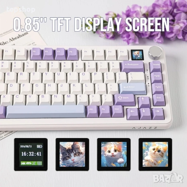 НОВА, ПЕРФЕКТНА механична клавиатура AJAZZ AK820 MAX HE с екран и копче, магнитен ефект на Хол, регулируемо задействане, 3 режима безжична бърза клавиатура, кремаво уплътнение, RGB подсветка, NKRO за Win/Mac, имаме я бяла и сива