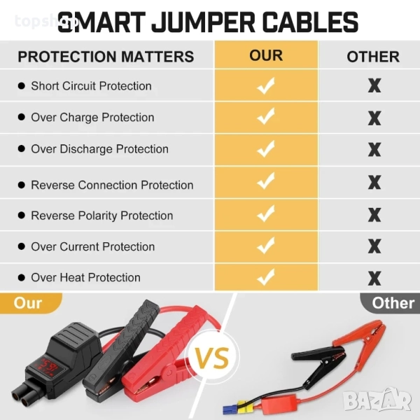 【Кабели със здрави скоби】Обновени стартери за автомобили с удължена дължина за достигане до различни клеми на батерията, по-дебел кабел за по-добра проводимост, по-голям обхват на отваряне за лесна употреба, вградени 8 защити и видими аларми за автоматично откриване на връзката, ще ви освободят от всички притеснения относно неправилна работа и искри.