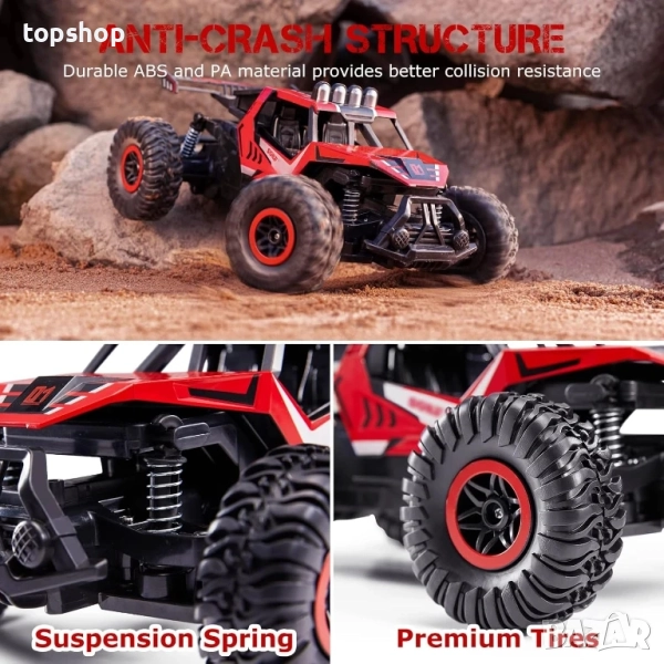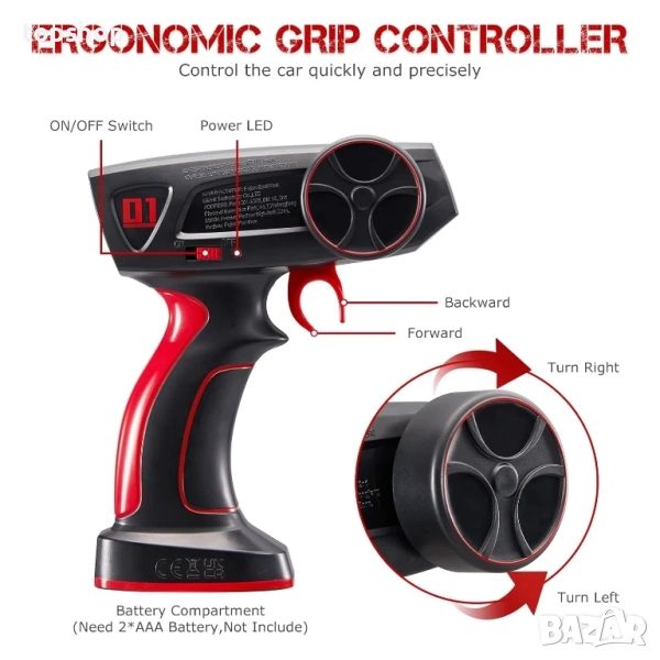 2.4g предаване без смущения: Лесното за използване 2.4ghz предаване без смущения позволява на множество колички да играят едновременно. С ергономичния си дизайн, контролерът е удобен за хващане и лесен за работа.