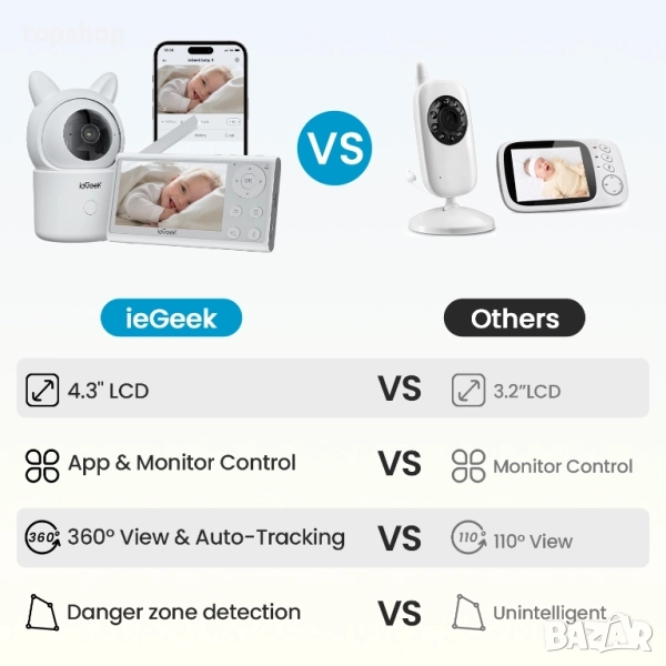 Нов тестван Бебефон с монитор и управление през приложение Iegeek Baby 4 4,3-инчов екран и 360°...