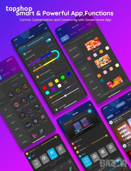 Обширна функция „Направи си сам“: Има различни опции за персонализирано осветление за „Направи си сам“. След това можете да споделите вашите LED светлини с променящи се цветове в общността на приложенията. Освен това ще намерите още вдъхновение, за да внесете ярки цветове в Govee Light Studio.