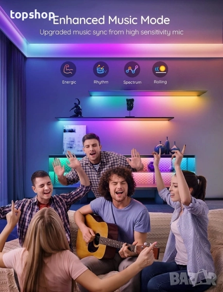 LED светлини със синхронизиране на музика: LED лентите за стая автоматично ще се синхронизират с любимата ви песен. Потопете се в сладката музика и променящите се цветове LED светлини.