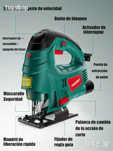 Лазерен водач и водеща линия: вграденият лазерен водач позволява прав, точен и професионален разрез.