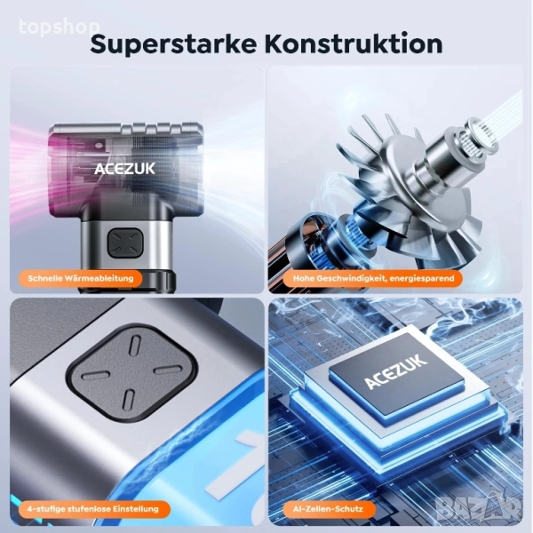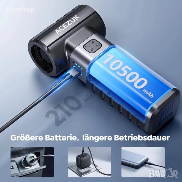 Чисто нова мини въздушна духалка ACEZUK с 200 000 об/мин за комплект за почистване на компютър, 10500 mAh батерия 4 скорости за почистване на клавиатура, компютър, електроника, авто