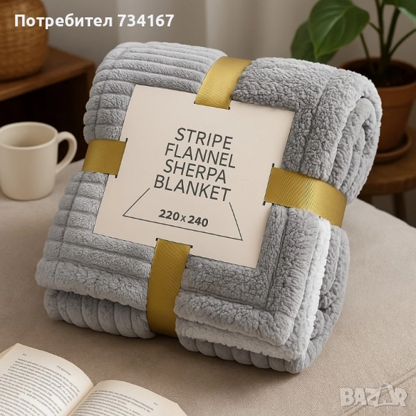 Фланелено одеяло с райе и пухкава подплатаПродукт: Фланелено одеяло с райе и пухкава шерпа подплата (Stripe Flannel Sherpa Blanket);