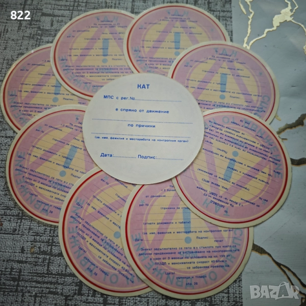 Стикер "КАТ- НМ"Спрян от движение"-80/90-те години.Цената е за бройка.Имам 12 бр.