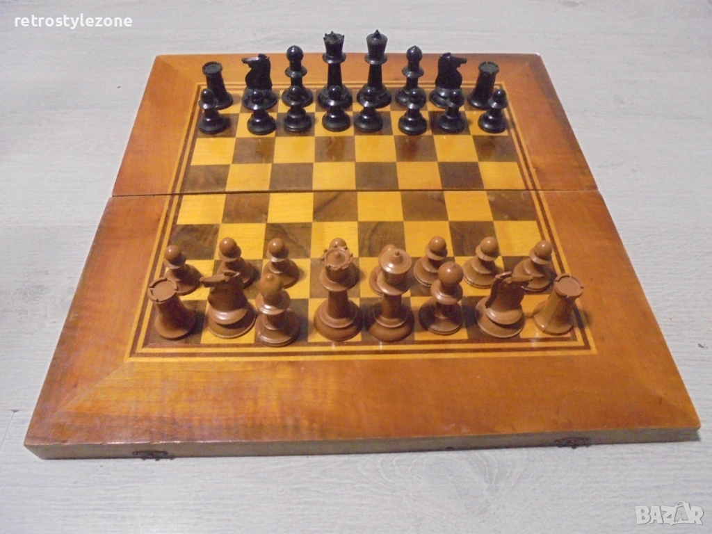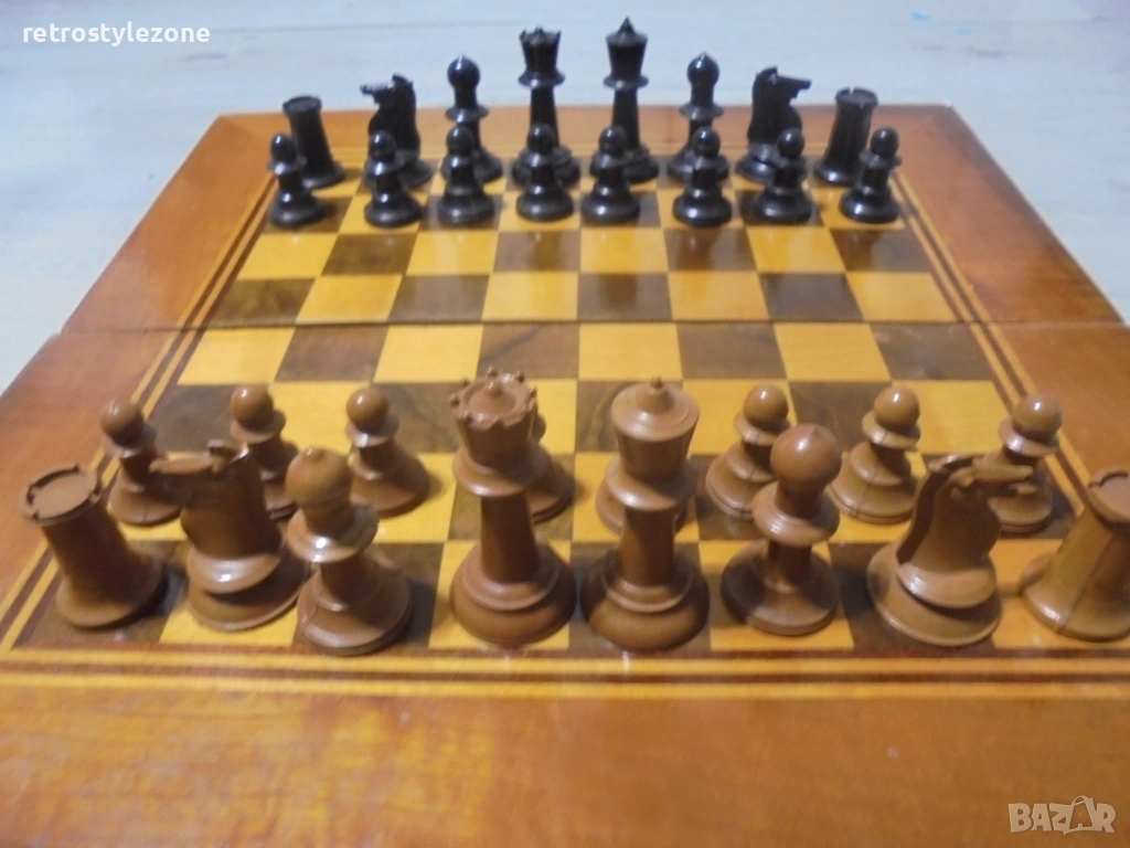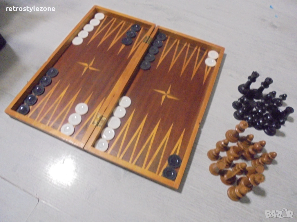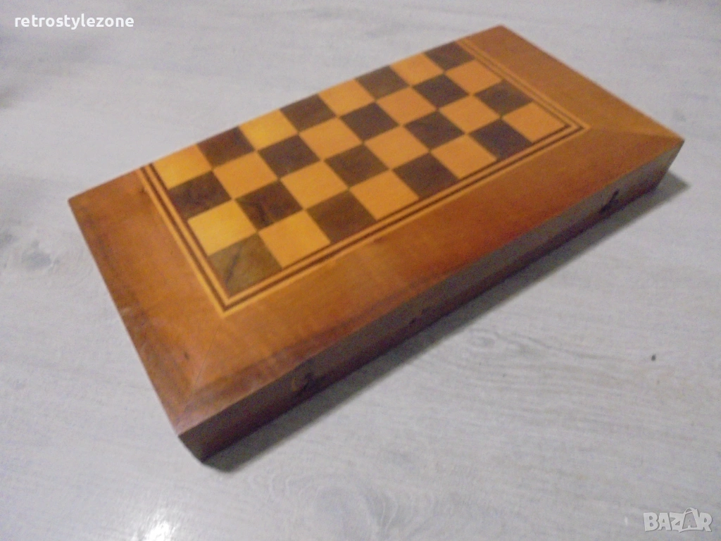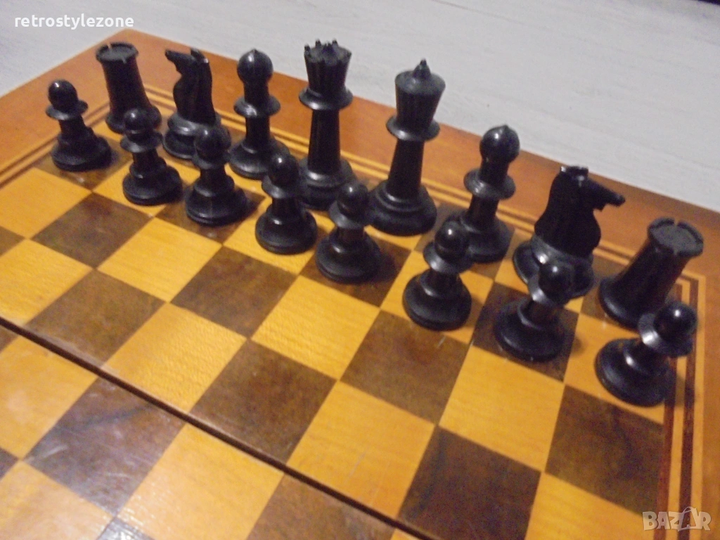 Оригинален стар комплект шах и табла, производство от социалистическия период в България.