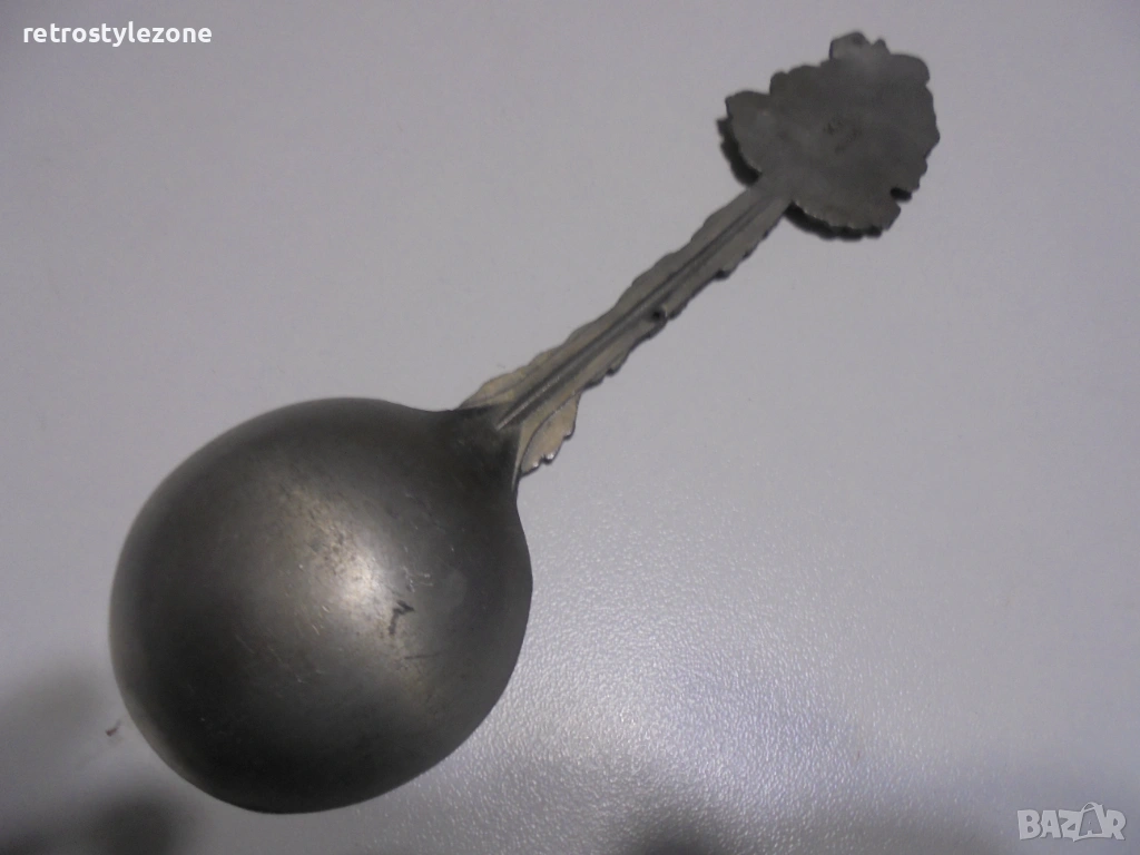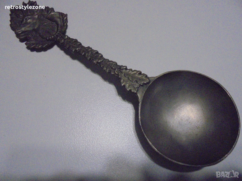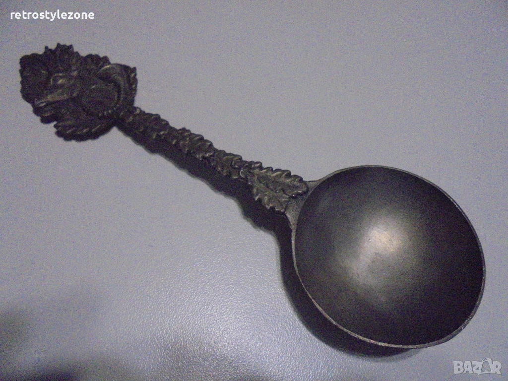 стара декоративна калаена лъжица, изработена от висококачествен калай Zinn 95%, с изключително детайлна релефна орнаментика.