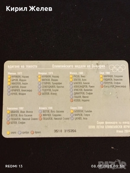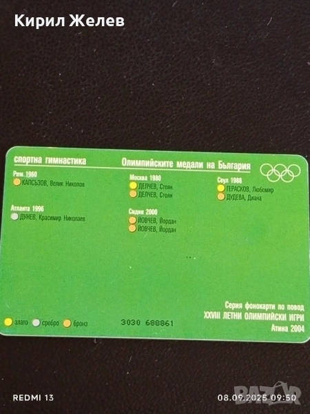Три фонокарти БУЛ ФОН тема ОЛИМПИЙСКИТЕ МЕДАЛИ НА БЪЛГАРИЯ 50824 → Обява 51638853