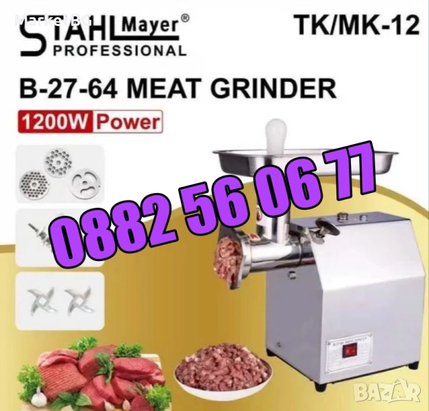 Професионална месомелачка ТК-12 1200W с 3 решетки и 2 ножа + приставка за домати → Обява 51639280
