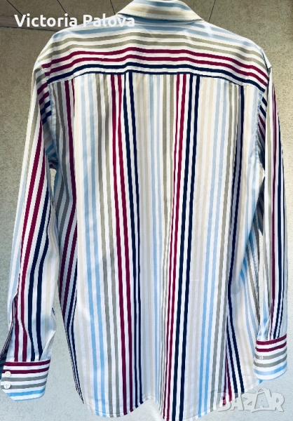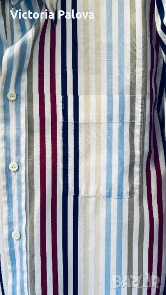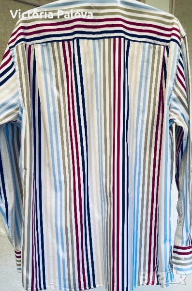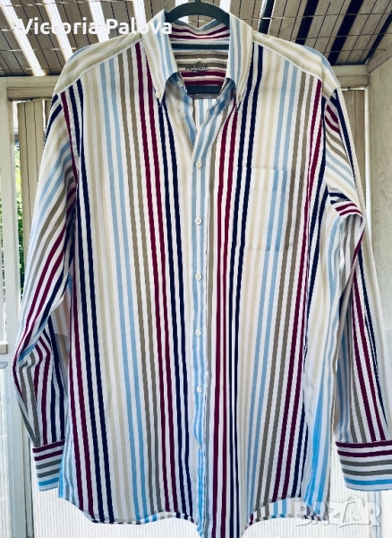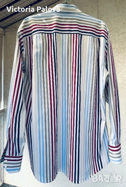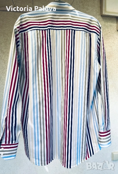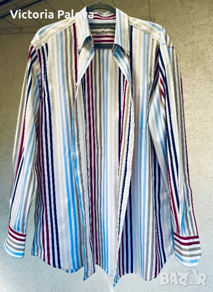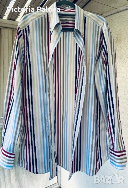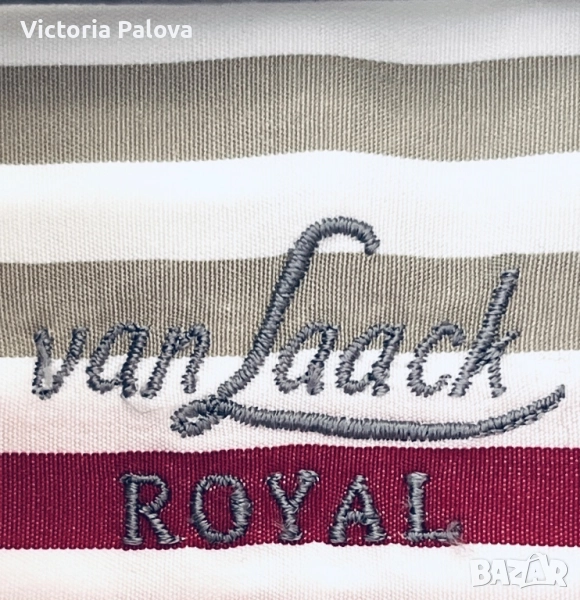 Много красива риза на райе, висококачествена материя, лесно се поддържа, бродирано лого на маншета. Рамо - 52см, ГО - 58см, дължина - 81см, ръкав - 64см. VAN LAACK е немска марка, известна с производството на първокласни мъжки ризи и други дрехи от висок клас, съчетаващи модерен дизайн с изключителна носимост, което прави термина “ кралски” вероятно описание на техния статус в модната индустрия.