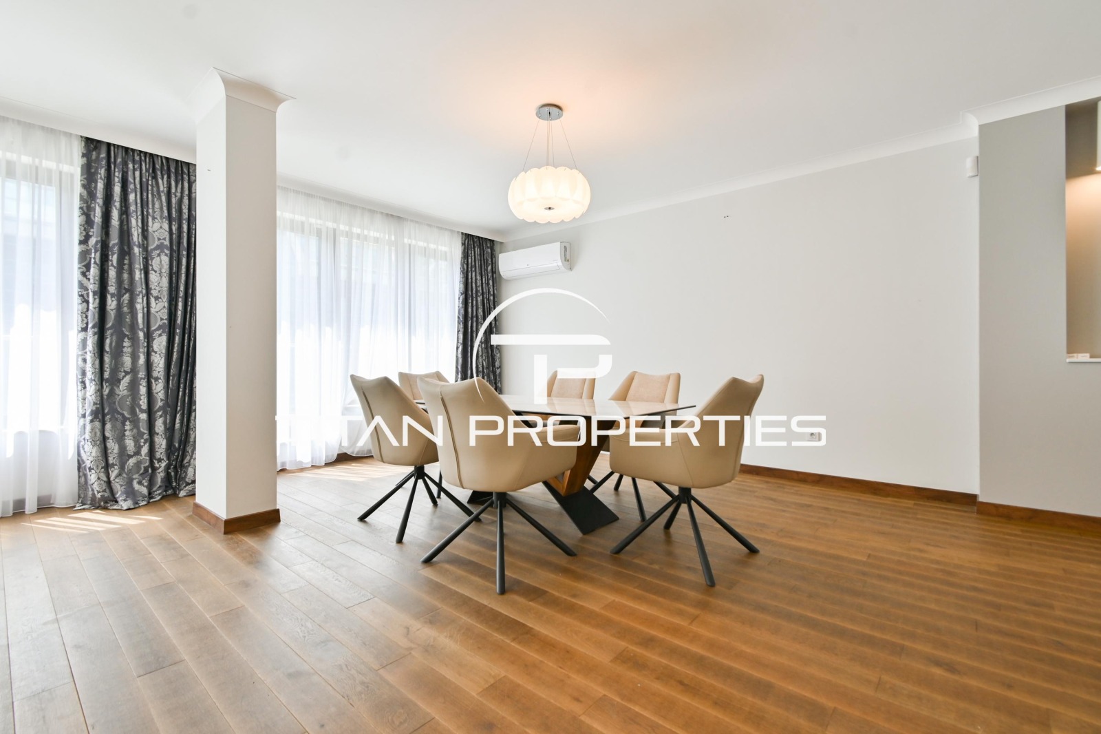 Титан Пропъртис - офис Младост с радост предлага на Вашето внимание четиристаен апартамент под наем в кв. Драгалевци, София. Имотът с площ 170 кв.м. се намира на 5-ти етаж в нова пететажна сграда. Изложението Изток, Запад и Юг осигурява изобилие от естествена светлина. Просторното разпределение обхваща хол с кухненски бокс, три спални, две бани с тоалетни и чудесна тераса. Жилището е обзаведено, отоплява се на ток и е оборудвано с климатик. Предложението е подходящо за тези, които търсят стилен и просторен градски дом. Включено наземно парко място и входни такси в цената.