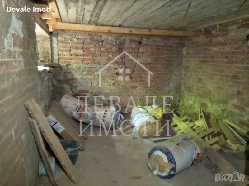 Бечов етаж със самостоятелен външен вход, коридор, стая, избено помещение и вътрешен подход към горните етажи.