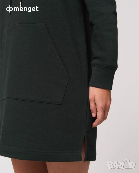 Дамски дълъг дизайнерски суитчър JUST DO IT с джоб тип кенгуру. Продукт на италианската марка Stanley Stella. Има двуслойна качулка, въже в същят с метални накрайници и капси. В долната си част има подгъв и две цепки от двете страни.