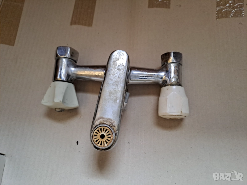 Стоящ душ и батерия смесител двуръкохватков за баня. Работещ, добре запазен, но свален поради ремонт и смяна с друг модел. Отговарям на съобщения тук, изпращам с куриер с отстъпка, преглед или лично предаване в София - ж.к. Надежда 1.