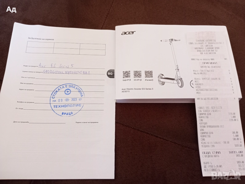 Тротинетка Acer → Обява 51640989